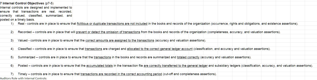 7 Internal Control objectives