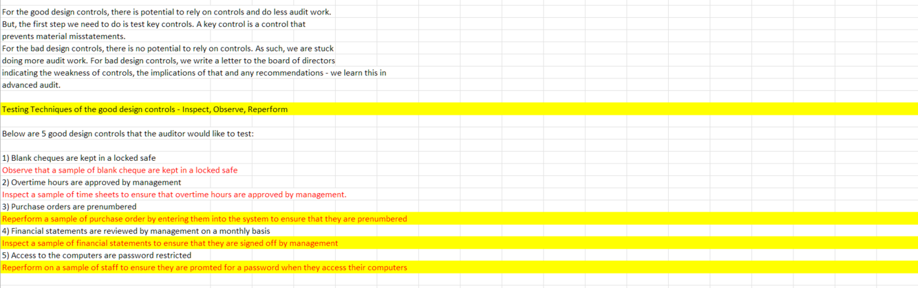 Testing Techniques of the good design controls - Inspect, Observe, Reperform