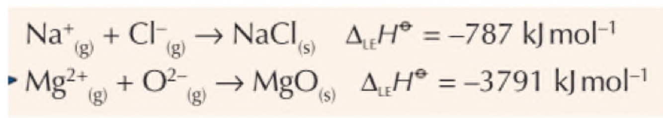 The smaller the ionic radii of the ions involved, the more exothermic the lattice enthalpy