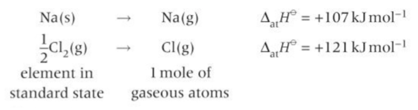 • changing the elements in their standard states into gaseous atoms (endothermic process)