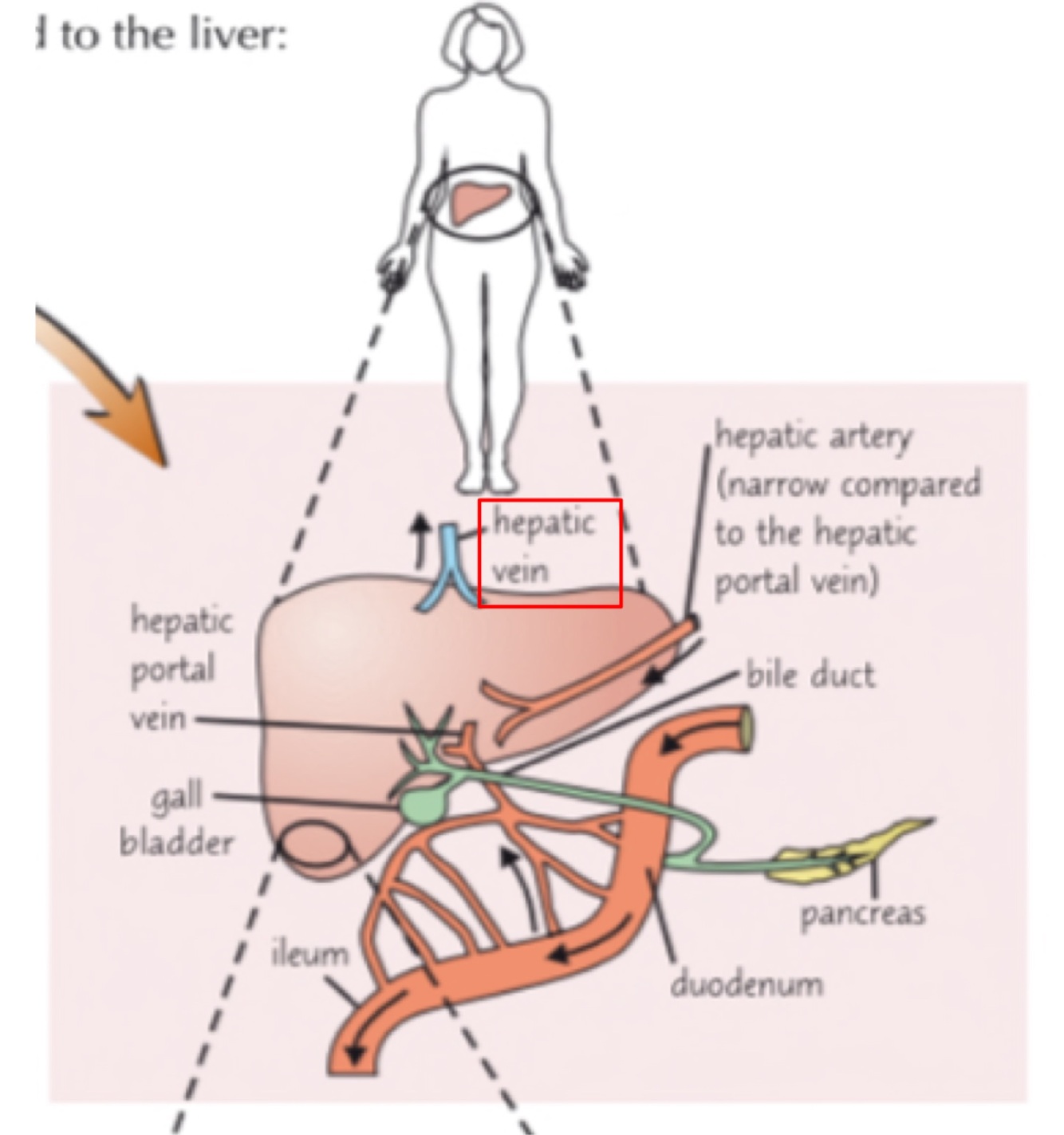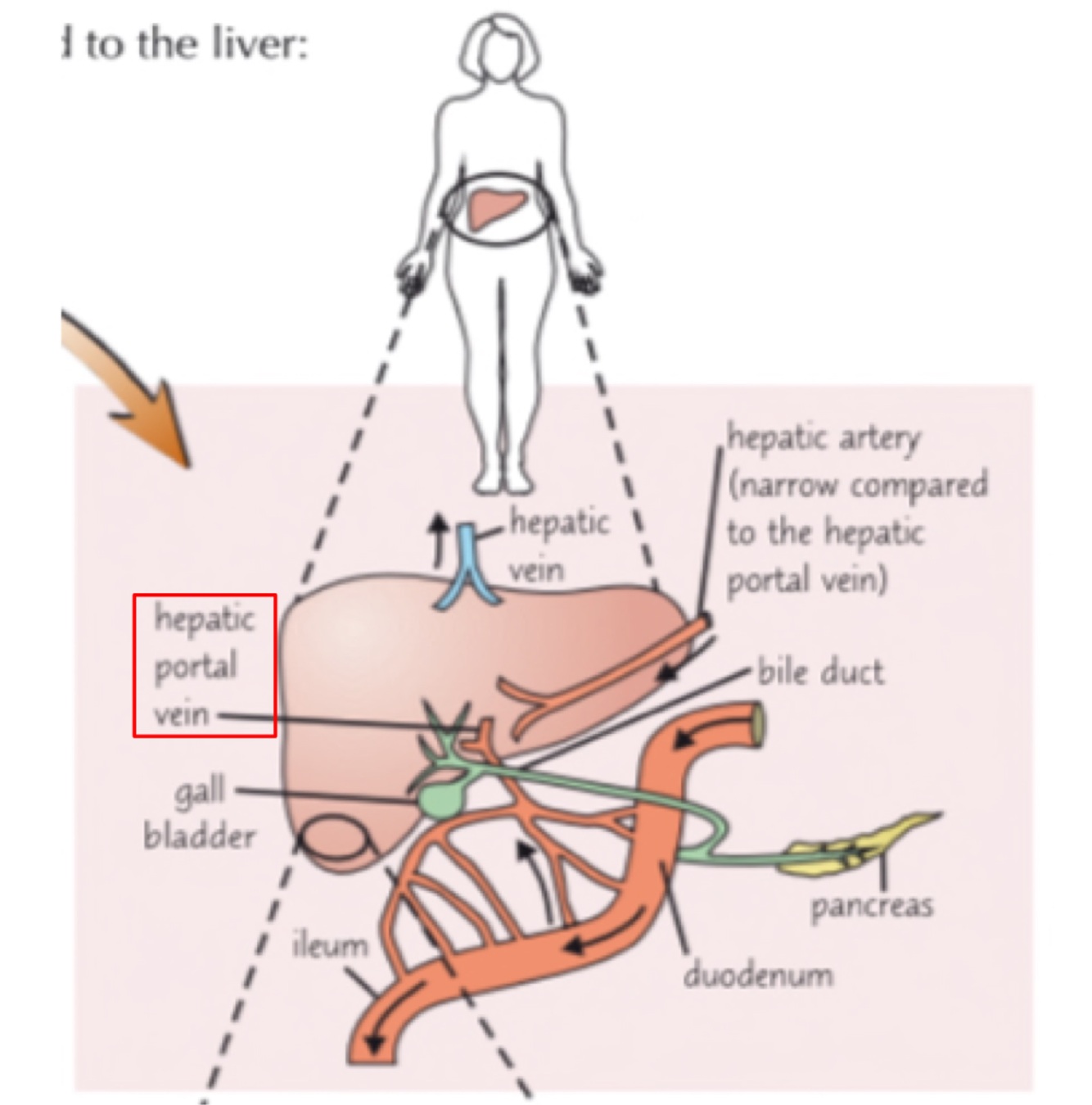 Hepatic portal vein brings blood from the duodenum and ileum (part of small intestine)