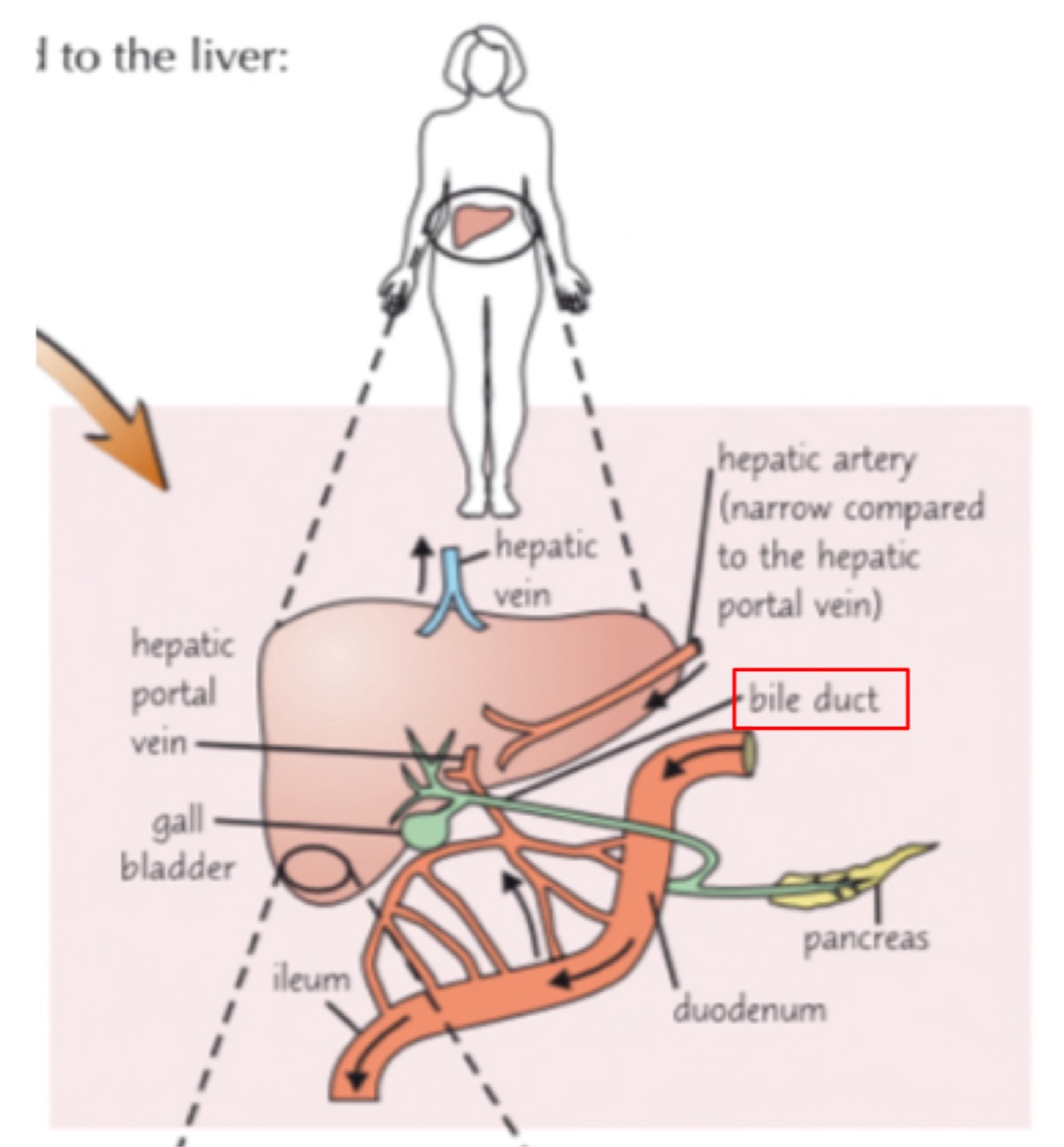 The bile duct takes bile to the gall bladder to be stored