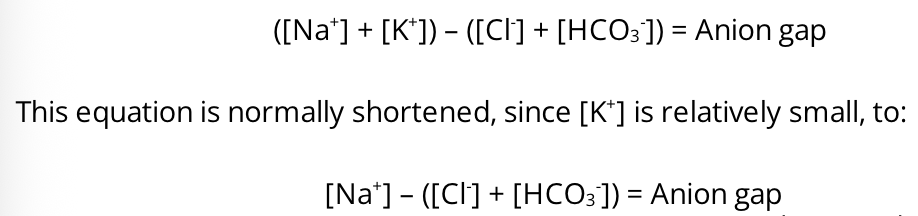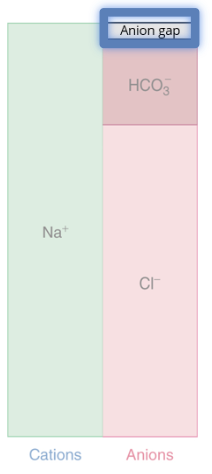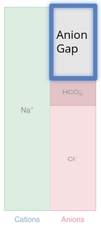 high anion gap (>16 mEq/L) indicates that the metabolic acidosis is caused by an increase in the unmeasured anions, which causes a decrease in [HCO3-] as it is used up for buffering the acids