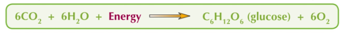 A process where energy from light is used to make glucose from H2O and CO2 (light energy converted into chemical energy in the form of glucose)