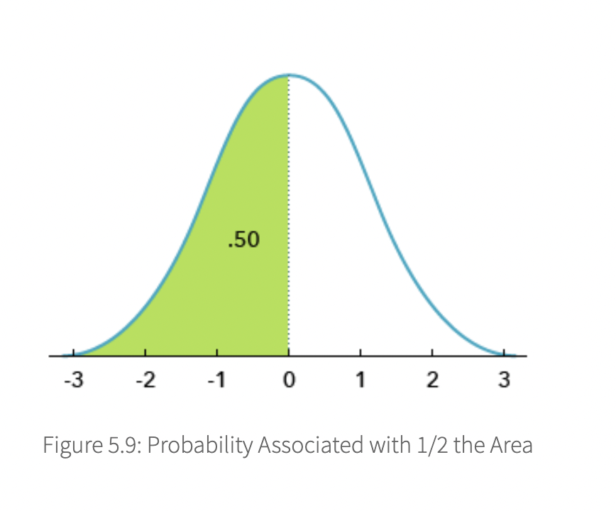 The total area under the normal curve is equal to –/If you were to sum the probabilities of every value in the distribution, they would sum to –