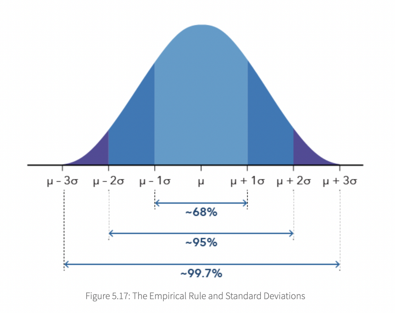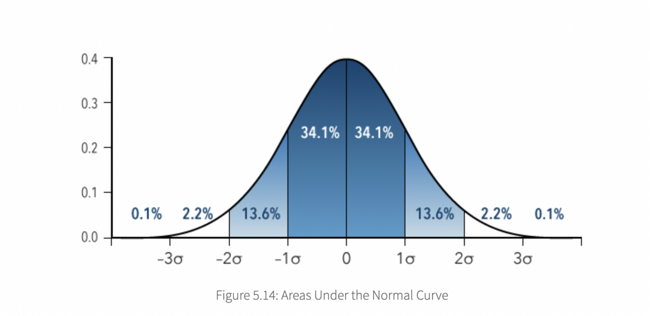 The empirical rule states that, for data with a symmetric, bell-shaped distribution like the normal curve shown below, the normal curve area has the following characteristics (3):