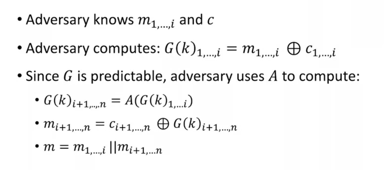 if G is predictable, stream cipher is not secure