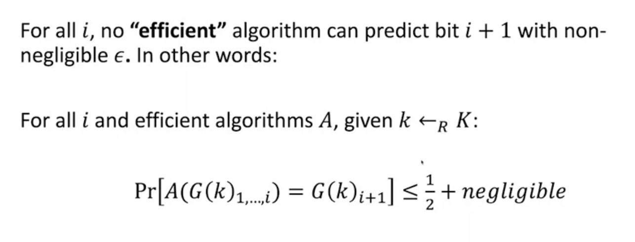 for all i, no “efficient” algorithm can predict bit i + 1 with non negligible E.