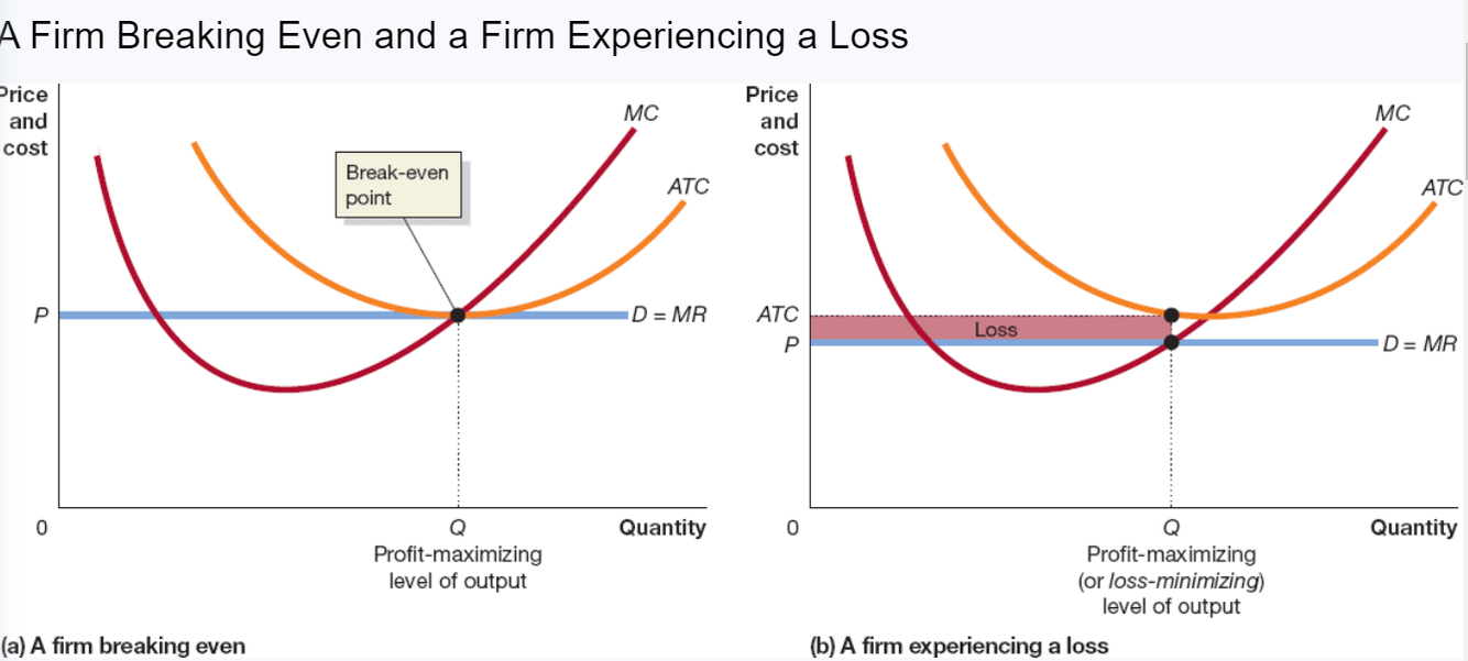 Firms will leave the market until P is pushed back up to P = ATC for the average firm.