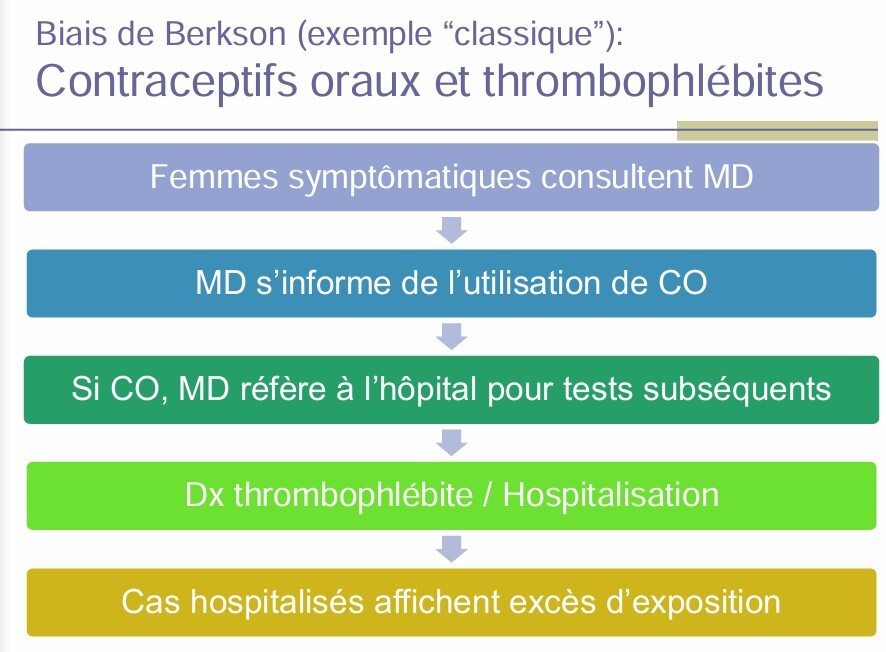 Peut se produire quand les cas sont sélectionnés à l’hôpital et que l’exposition elle-même affecte la probabilité d’hospitalisatione t donc de séléection pour les études.