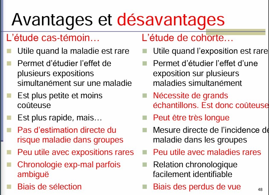 Avantages et désavantages des études cas-témoin