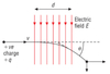 Draw a diagram showing the electric field between a positive and a negative plate