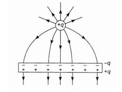 Field lines move from the charge and meet the plate at 90º