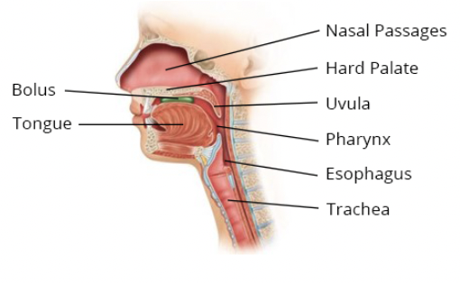 explain how the bolus is prevented from entering mouth, nasal passages, respiratory passages