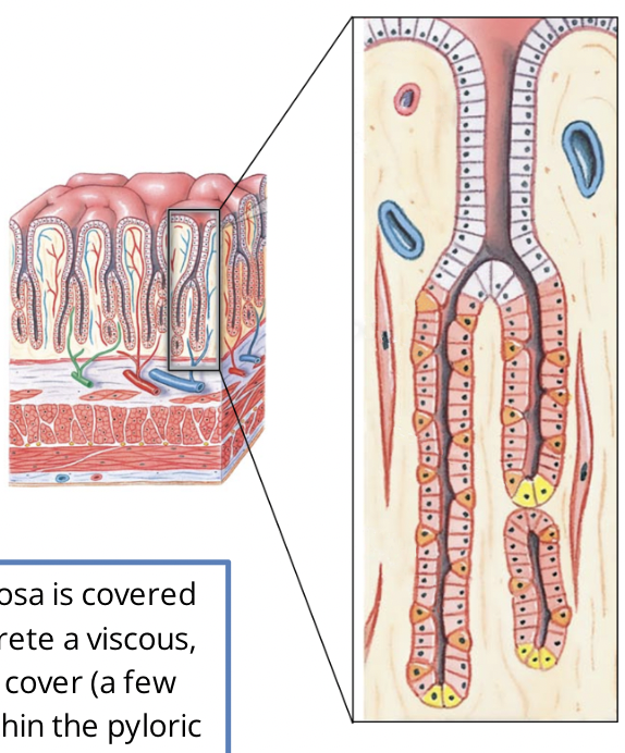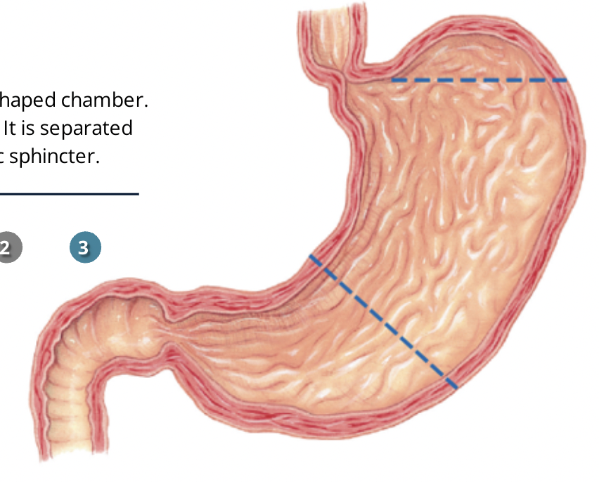 - the stomach has deep folds that get smaller and flatten out as the stomach expands