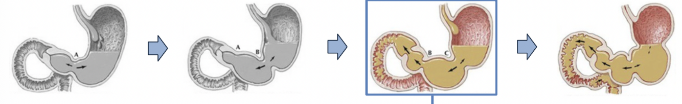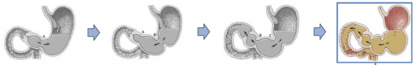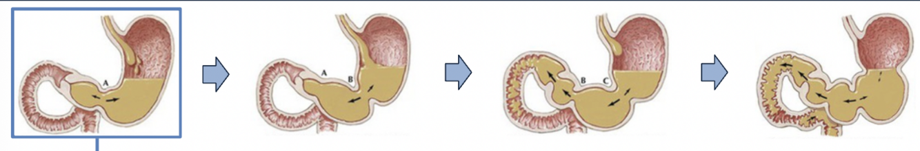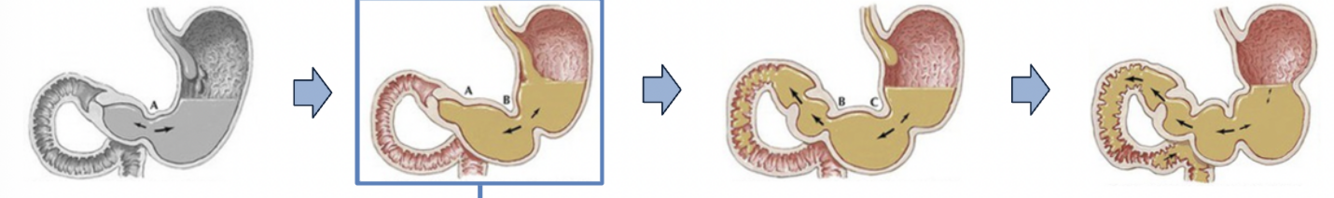 - when the peristaltic wave pushes the chyme to the pyloric sphincter and it cannot pass through it, the chyme folds back upon itself only to be propelled forward and folded back over and over