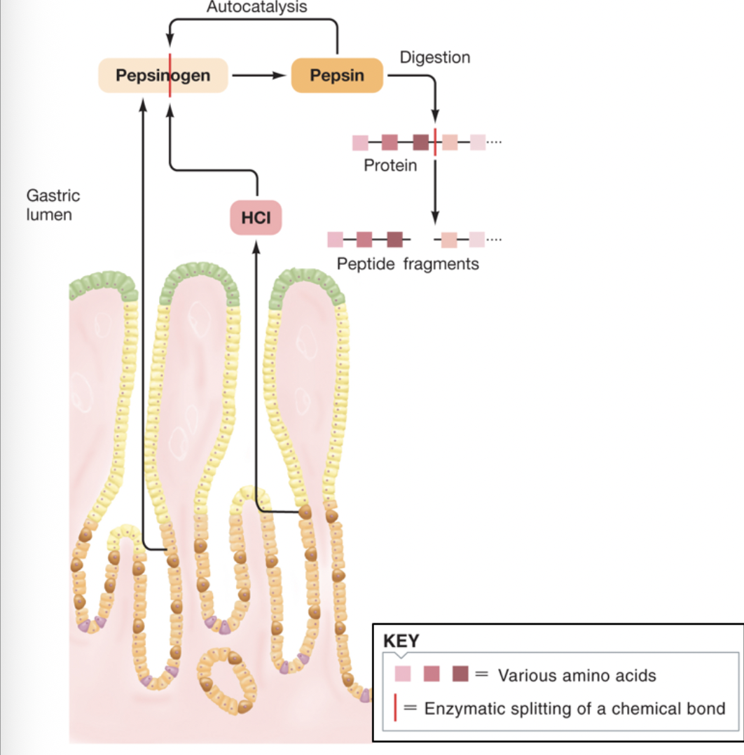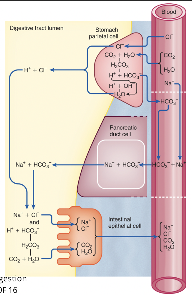 parietal cells actively secrete HCl into the gastric pits, which empty into the lumen of the stomach and can decrease the pH to as low as 2