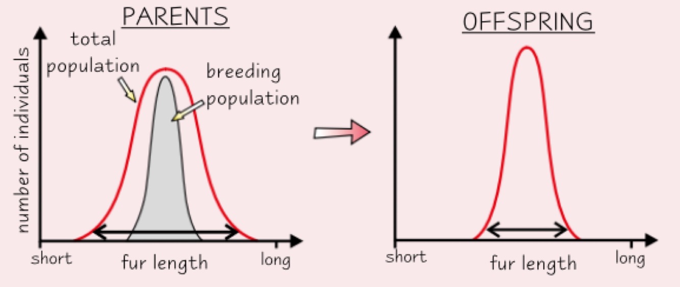 So they’re more likely to survive, reproduce and pass on their alleles. Over time the frequency of alleles for long fur length increases