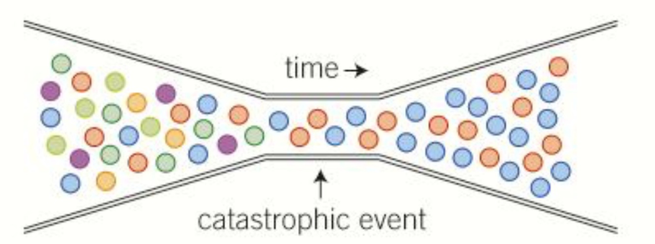 This is an event (such as a natural disaster) that causes a big reduction in a population’s size, leading to a reduction in the gene pool and genetic diversity