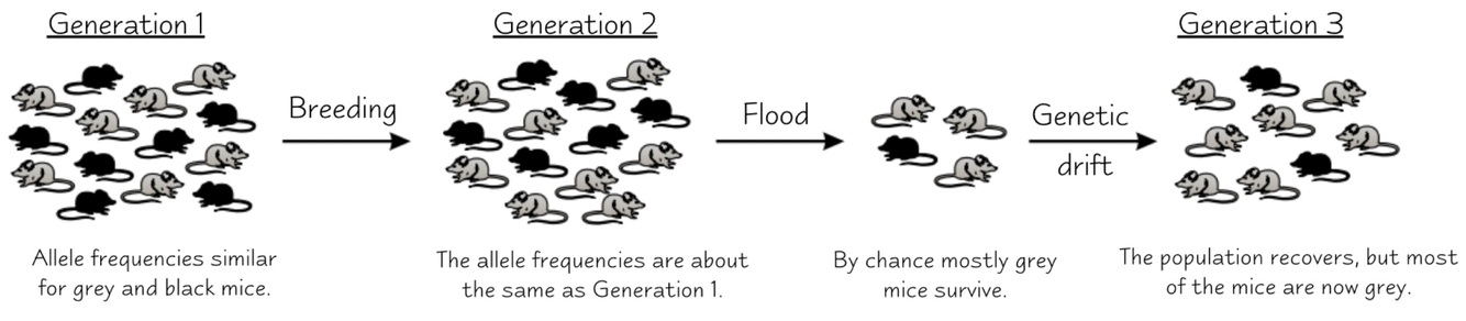 A large flood hits the population and the only survivors are grey mice and one black mouse.
