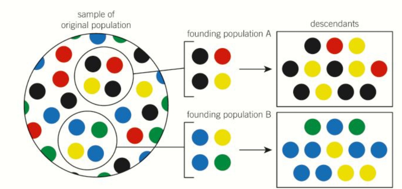 Without any further ‘gene flow’ (i.e. the introduction of new alleles from outside the population) the new population will grow with reduced genetic variation.
