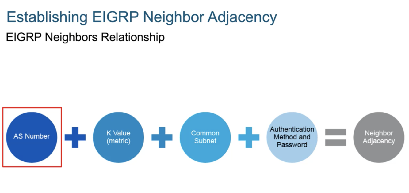 The following 4 broad parameters must match for an EIGRP Adjacency to form, these are: