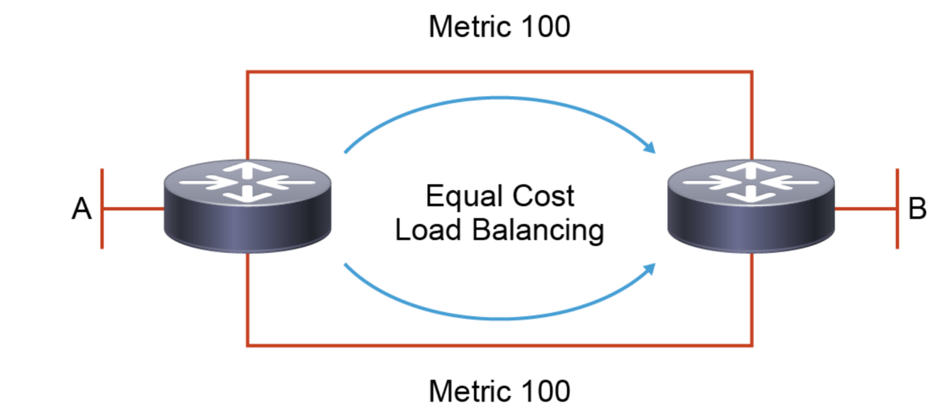Equal Cost Multi-Path (ECMP) is supported by routing in general via the maximum-paths command. It is a routing strategy to provide multiple paths to a destination.