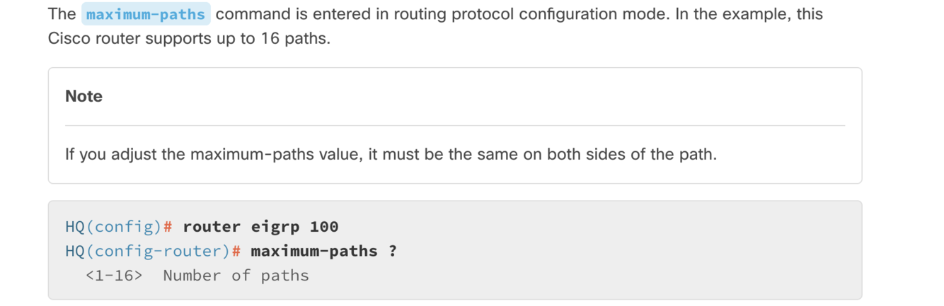 *remember maximum-paths cmd is required here and run within the router configuration mode. 16 paths are supported. If adjusted then the same must match on the other side.