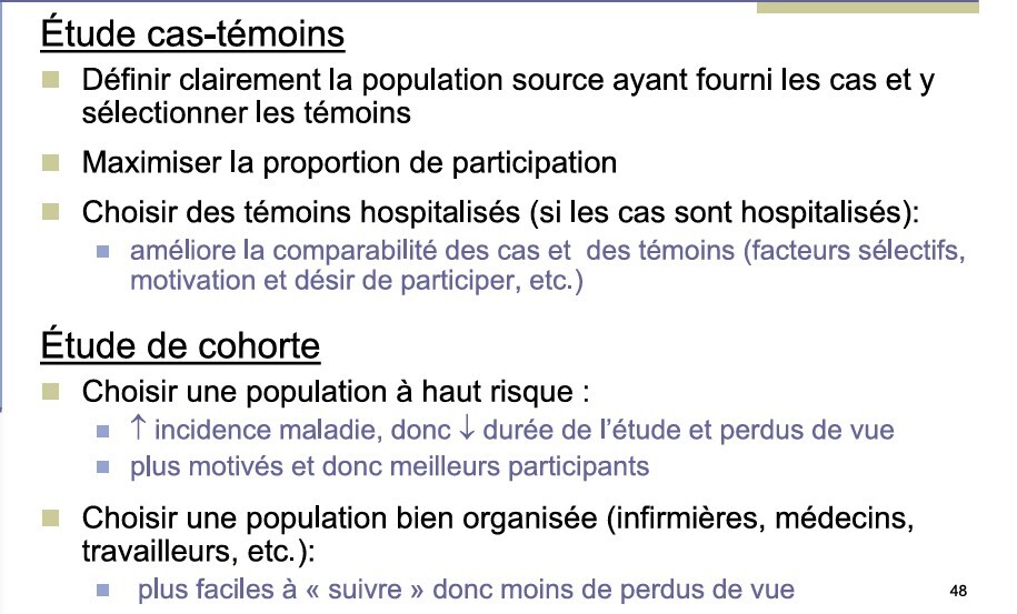 Comment prévenir des biais de sélecction dans les études cas témoin et de cohorte