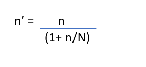 For the Sample Size equation, what formula is used to adjust the sample size so that is can be adjusted by a finite correction factor?