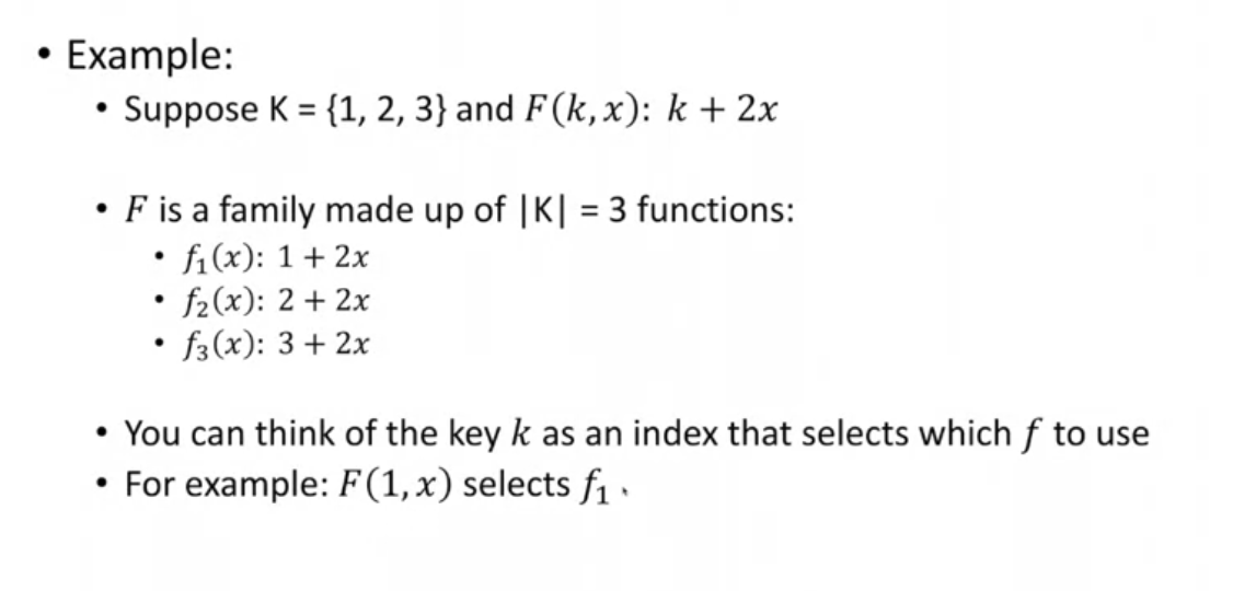 What do we mean when we say that a PRF is a “family” of functions indexed by key?