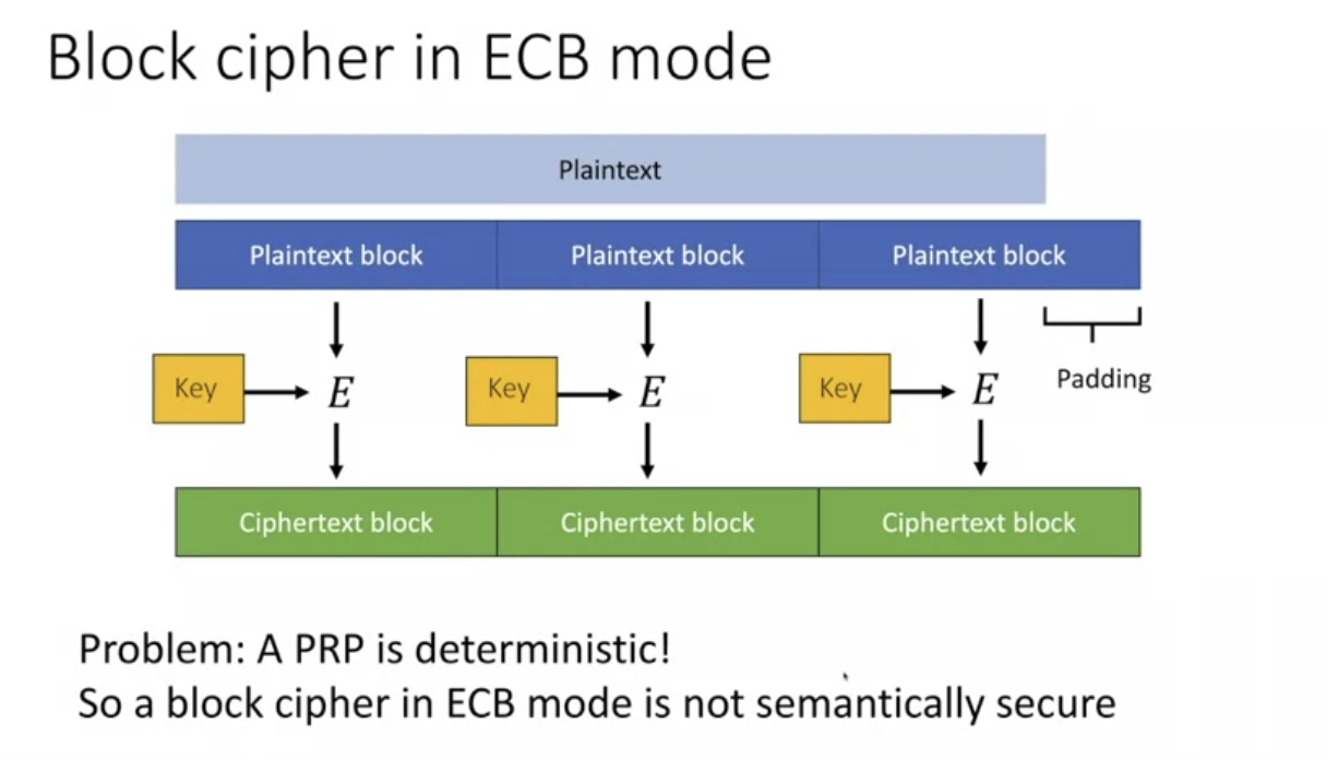 why is the block cipher in ECB mode not semantically secure?
