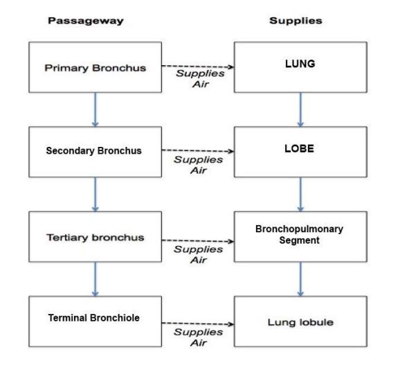 Each tertiary bronchus serves one bronchopulmonary segment.