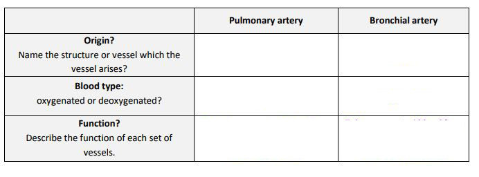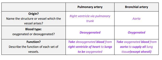 a DOUBLE blood supply, meaning they have blood entering and leaving by two sets of blood vessels, the pulmonary vessels (arteries and veins) and the bronchial vessels (arteries and veins)