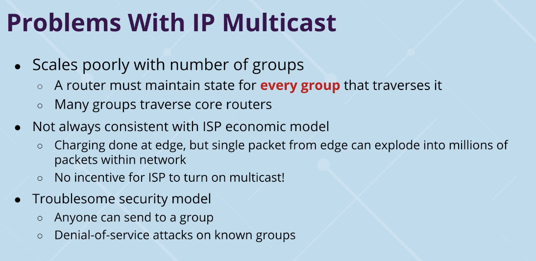 What are the problems with IP multicast?