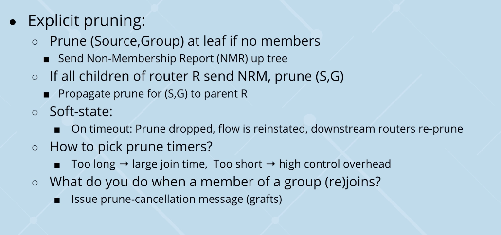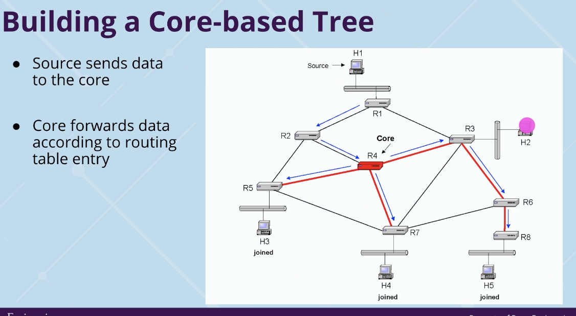 what to do for multiple sources? –core based trees (supporting multiple senders in a single tree)