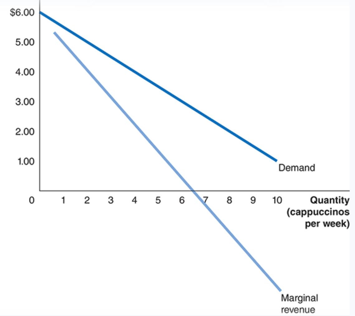 The marginal revenue curve is always below the demand curve when the firm has the ability to affect price.