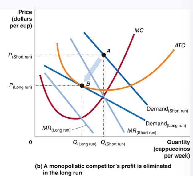 What happens to economic profits in the long run for a monopolistically competitive firm?