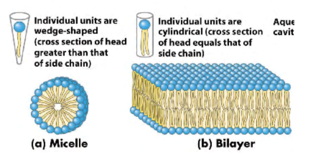-lipids with two hydrocarbons tails (glycerophospholipids and sphingolipids) tend to form bilayers