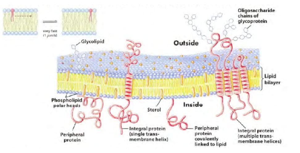 -lateral movement of proteins and lipids within the membrane is very rapid