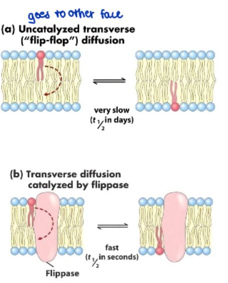 -uncatalyzed rate of lipid molecule crossing from one sheet to the other (flip-flop diffusion) is very slow
