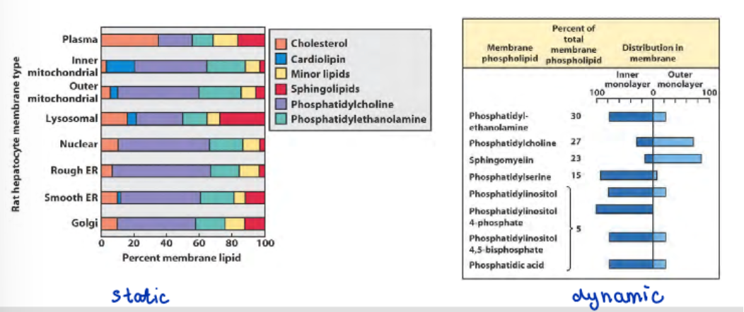 -composition of membrane components: lipids and proteins