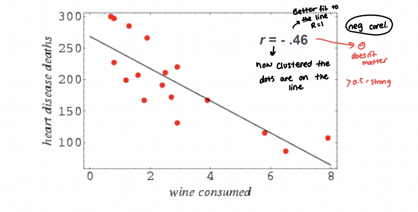 When r=1 it means best fit to the line. It basically means how clustered the dots are on the line. If the number is - it means neg corelation, if its >0.5=strong