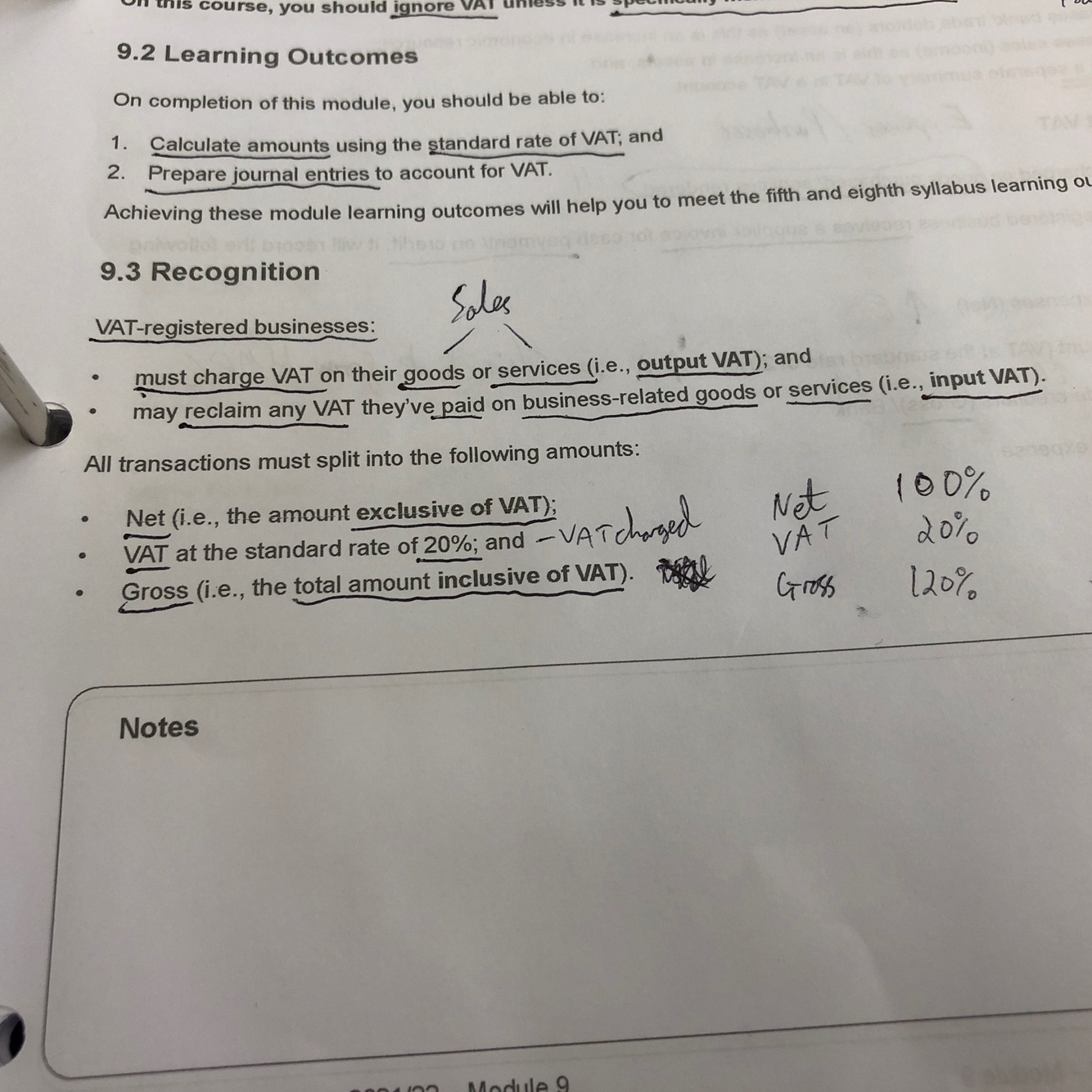 VAT on any sales going out of the business