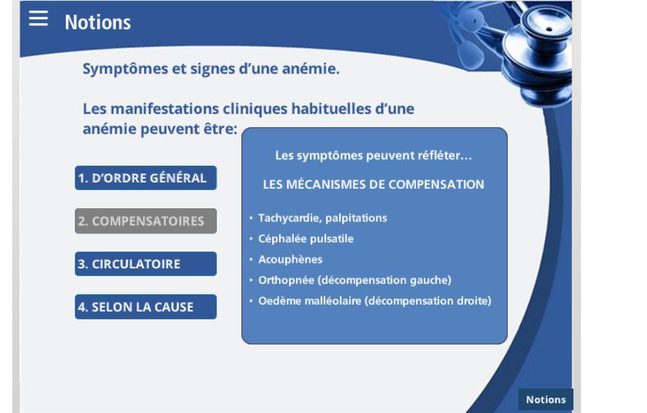 Donne moi 5 symptomes COMPENSATOIRES d’anémie
