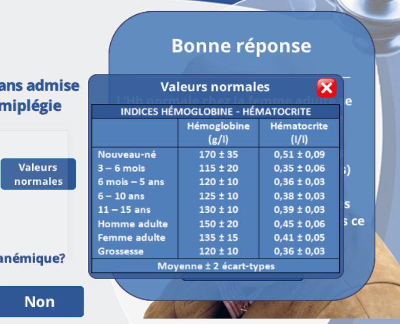 V/f Les valeurs d’hémoglobines normales chez l’enfant sont plus élevé et chez la femme enceinte plus basse