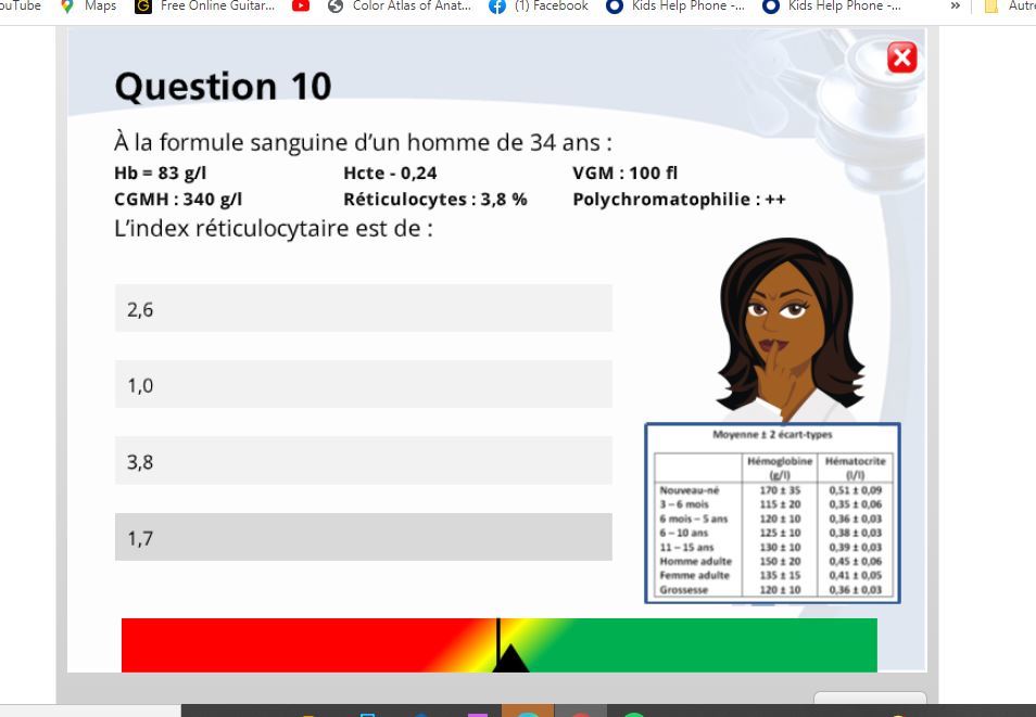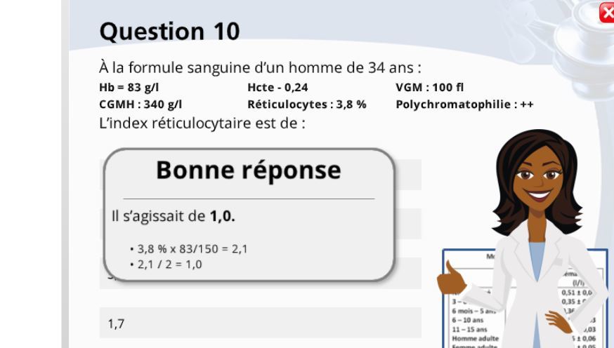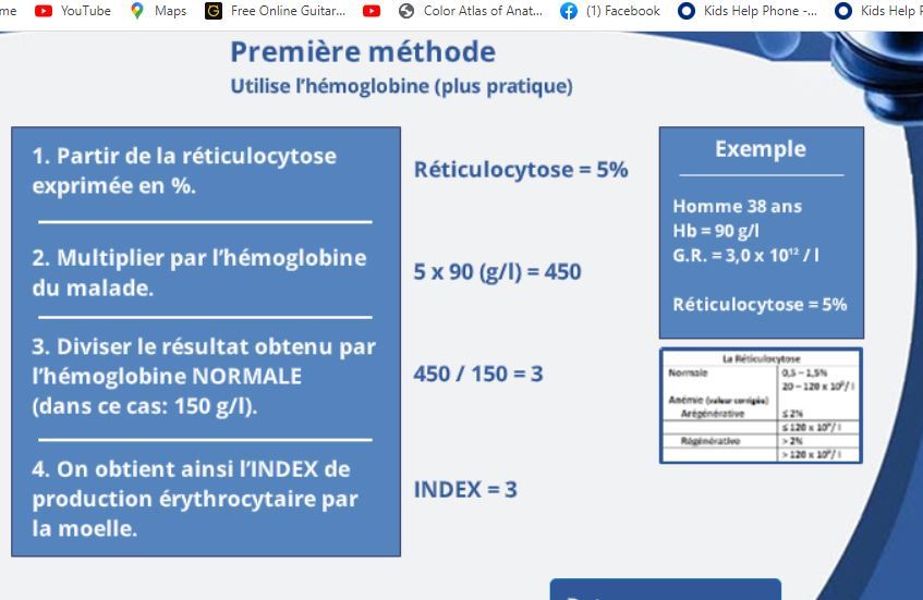multiplie par la valeur du malade la réticulocytose du malade