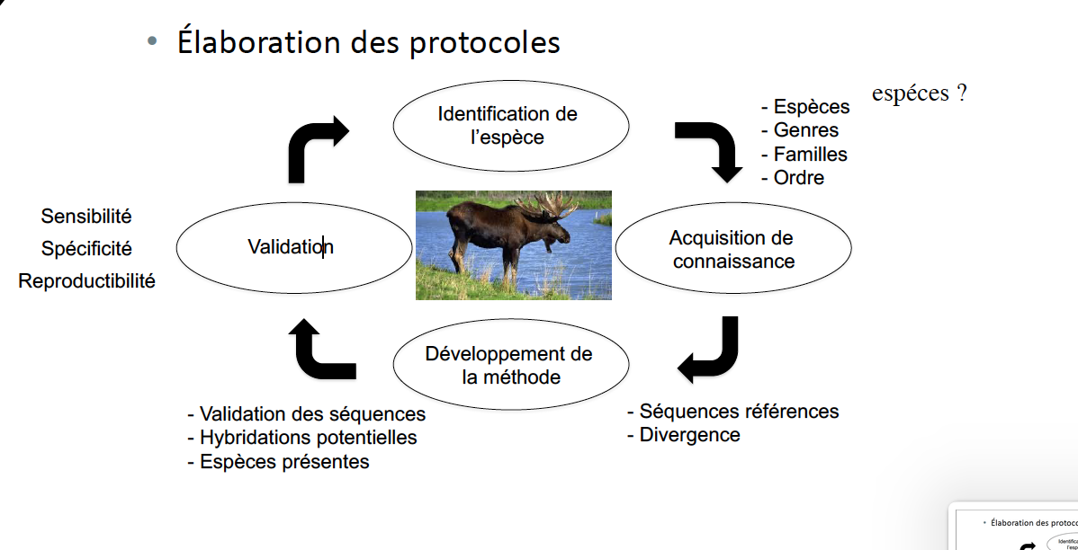 – Cytochrome b (cyt b) • Très utilisé • Grande banque de séquence (Genbank) • Amorces universelles existantes • Environ 1140 bp • Séquençage Sanger