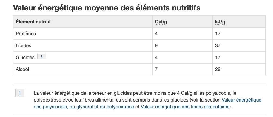 Quel macronutriment a la plus grande valeur énergétique en kcal/g?