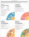 L’édition de 2007 du GAC mettait l’accent sur les groupes alimentaires, comme les produits laitier et leurs substituts, et sur les portions recommandées. Les valeurs suggérées (%) peuvent varier légèrement d’une référence à une autre.